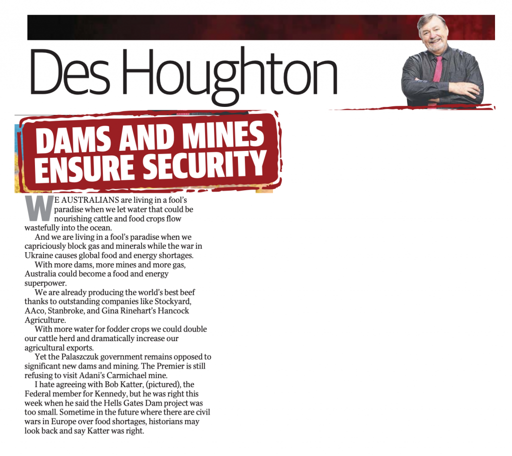 Des Houghton: Katter’s right, we need more dams, more mines and more gas