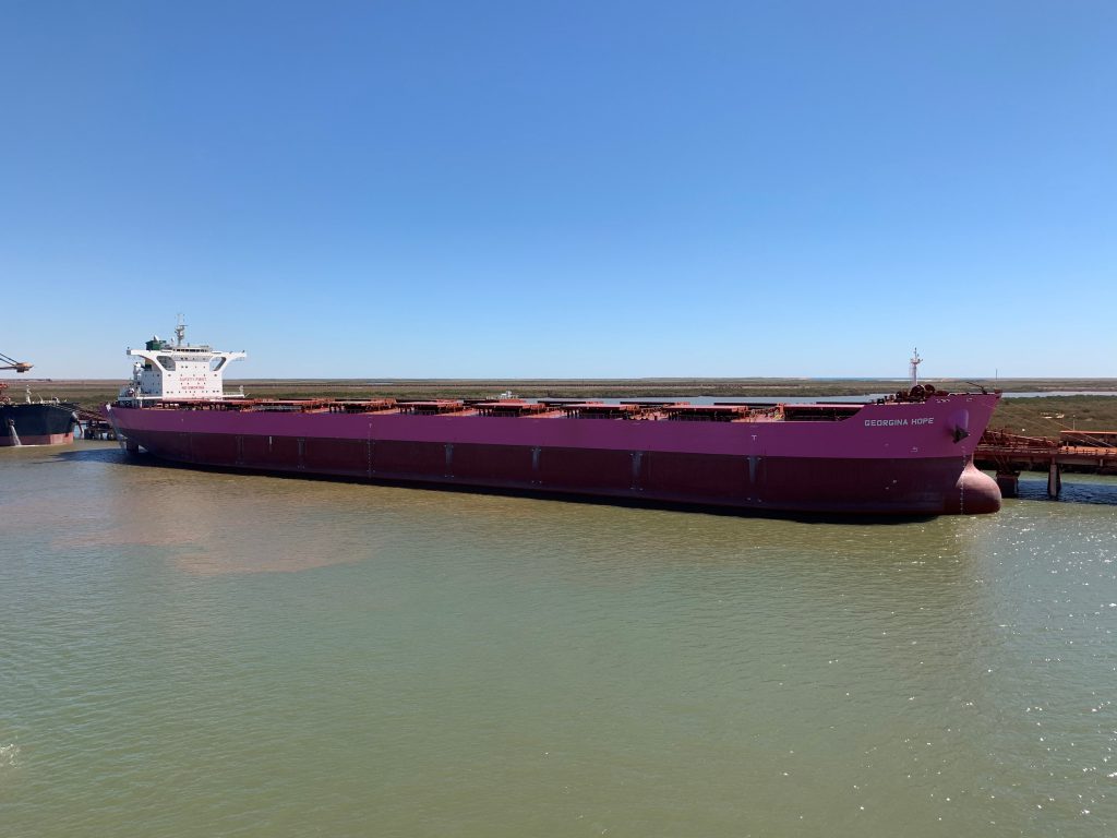 Renamed in honour of our Executive Chairman Mrs Gina Hope Rinehart, the 294-metre long vessel has also been painted an eye-catching pink in support of Mrs Rinehart’s long term commitment to breast cancer research and enabling better care, treatment and support for breast cancer patients. The vessel is owned by Hebei Ocean Shipping Co., Ltd. (HOSCO) based out of Hong Kong. Although the global COVID-19 outbreak prevented us from celebrating in the usual manner, a special water display will be carried out during the vessel’s inbound passage to mark her safe arrival.