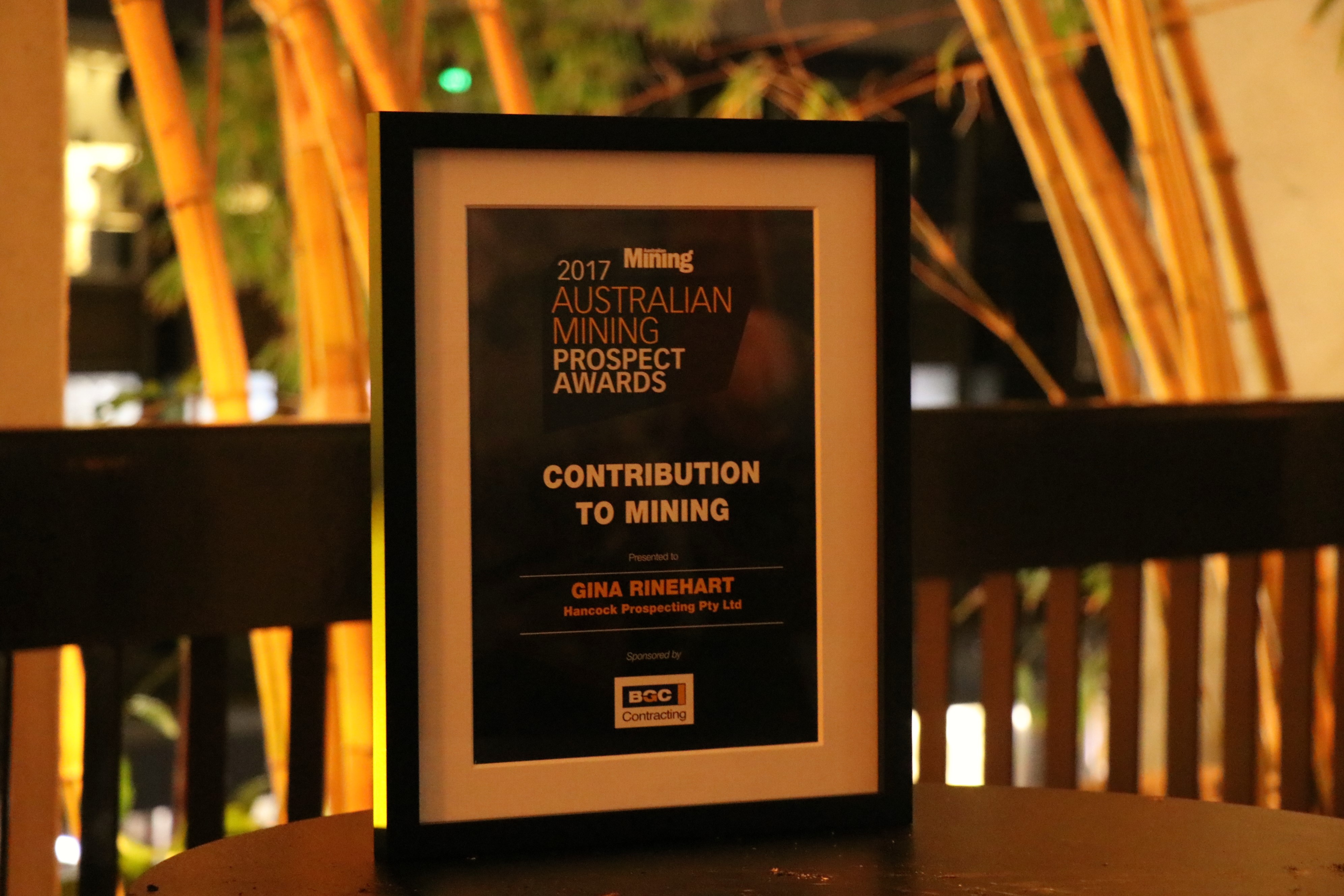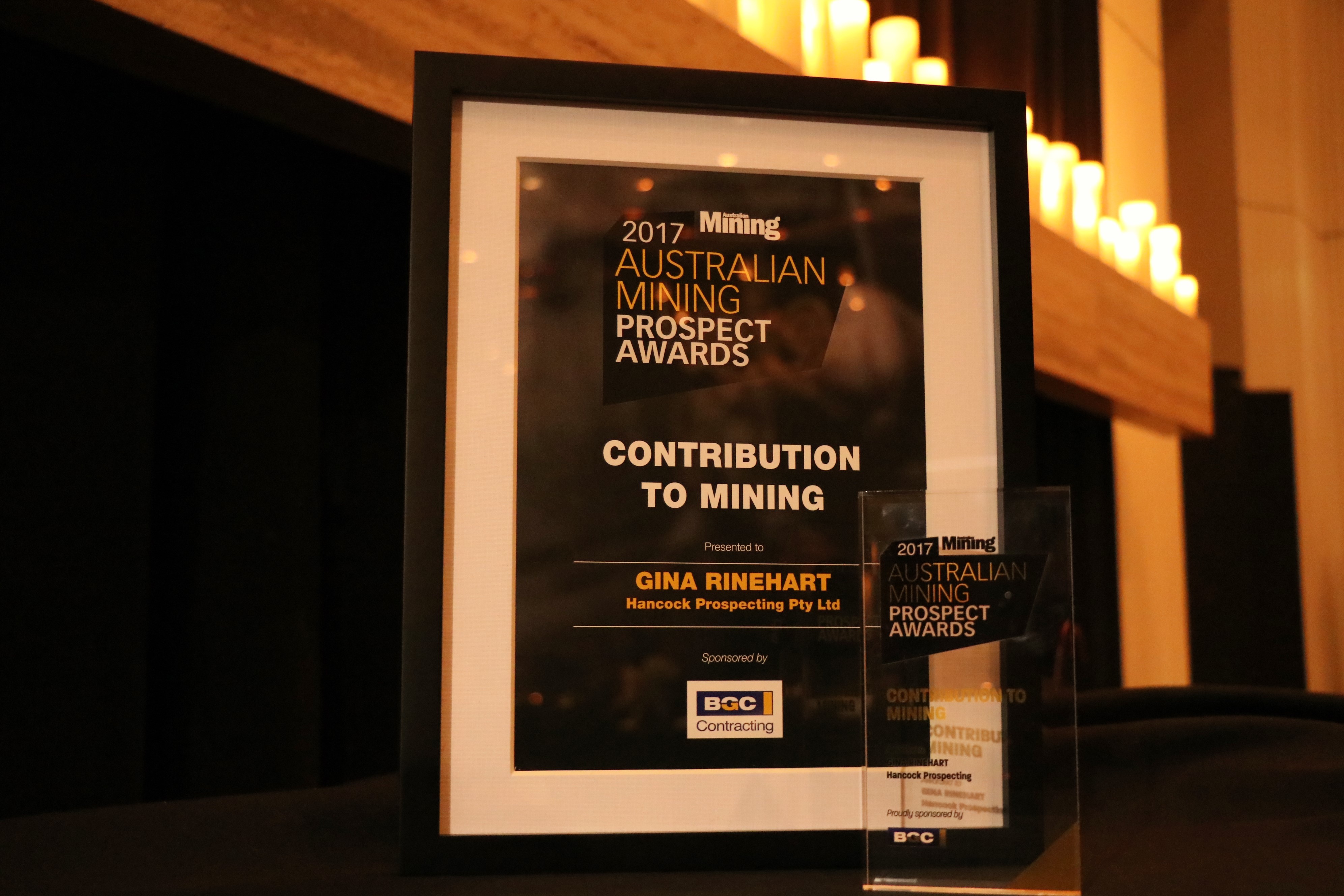 After many years of hard work in mining and its related industries, the Hancock Prospecting Group is delighted to announce that Executive Chairman Gina Rinehart won the Contribution to Mining award at tonight’s Australian Mining Prospect Awards in Sydney.