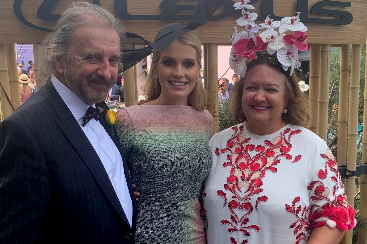 Mrs Gina Rinehart in the company of Tad Watroba, Executive Director of Hancock Prospecting & Lady Kitty Spencer