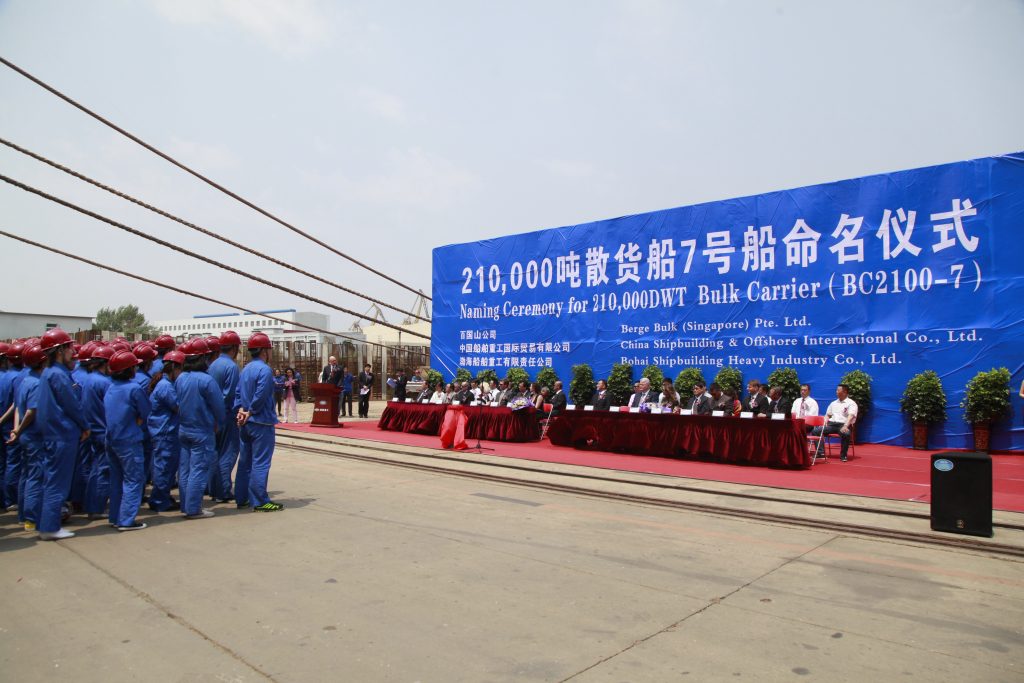 The vessel was officially named “Berge Toubkal”, after Mount Toubkal, the highest peak in North Africa, at the ship’s inaugural ceremony at the Bohai Shipyard in Huludao, China on June 27th. The christening ceremony was very special, with guests present from the Bohai shipyard, Berge Bulk, Roy Hill, and those who will sail the ship, as well as other Chinese guests, including a representative from Mrs. Rinehart’s partner, Shanghai CRED.