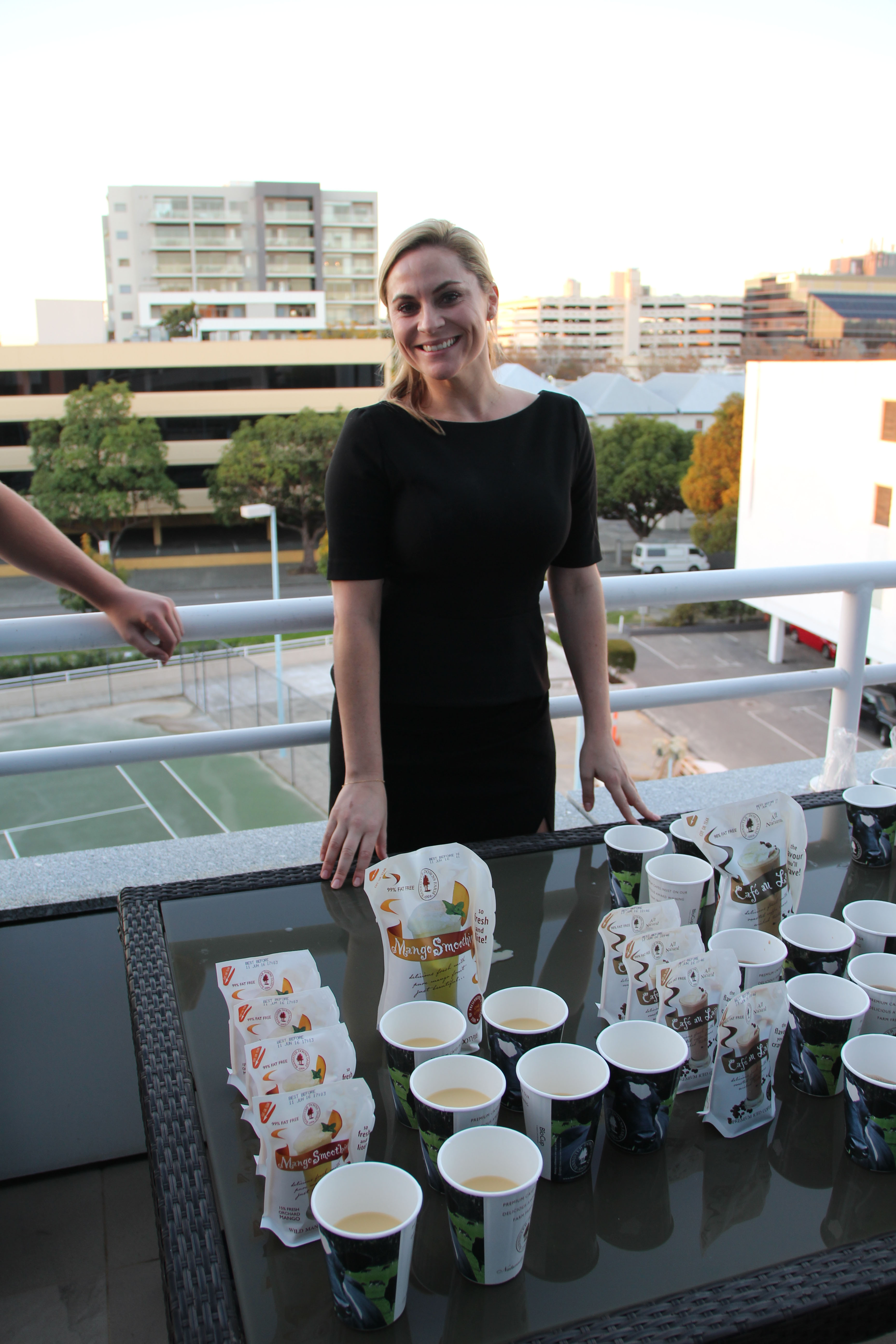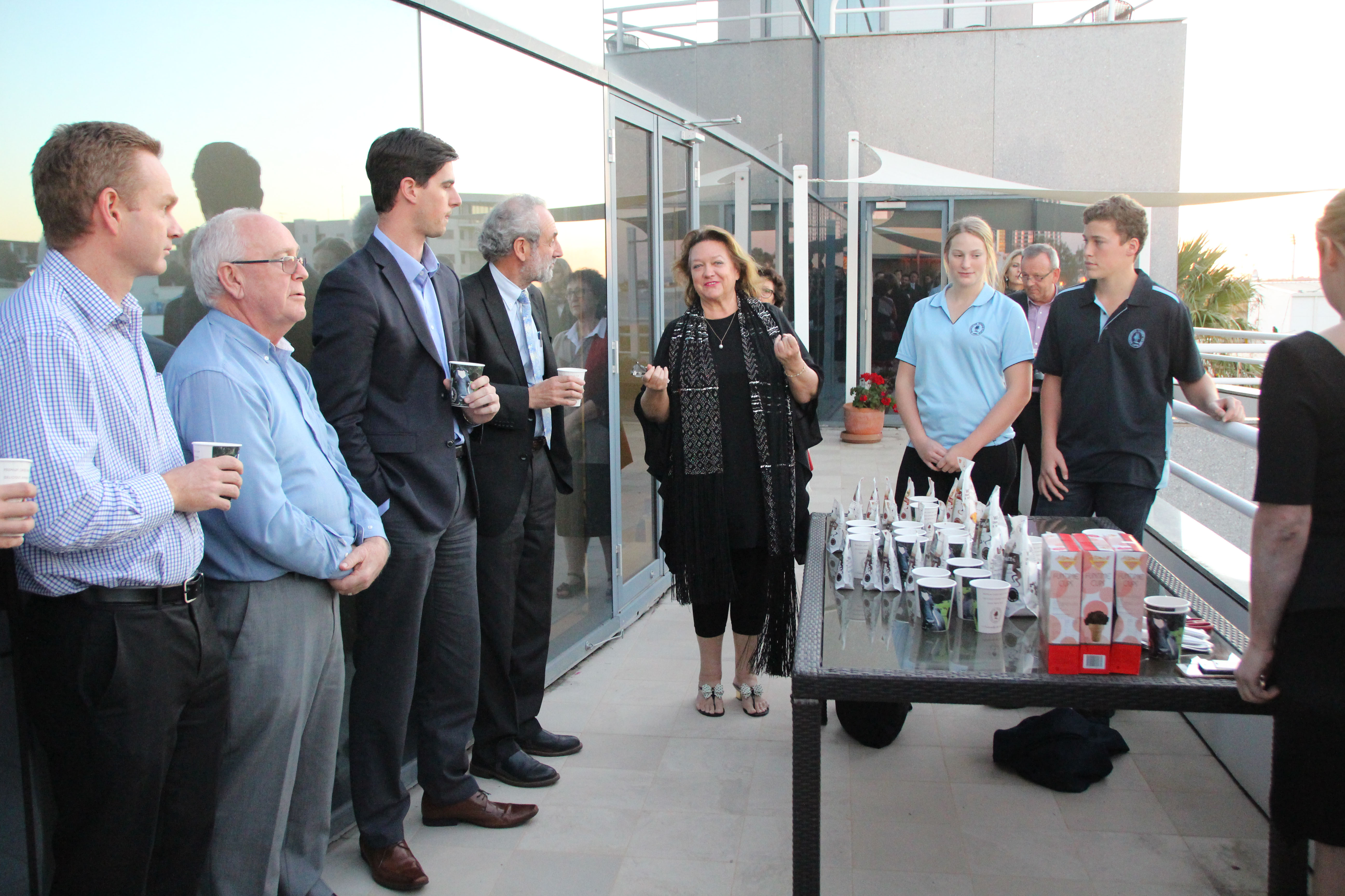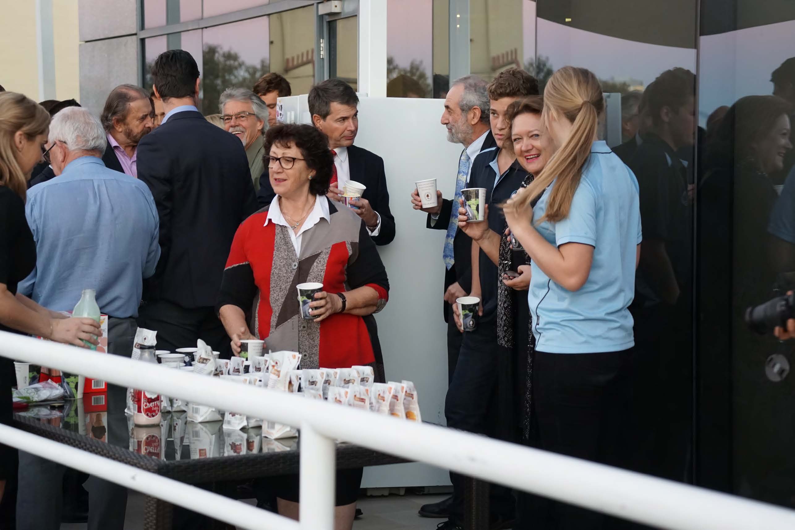 Guests gathered at the Hancock Prospecting offices , drinking a variety of Bannister Downs milk drinks and ice creams.