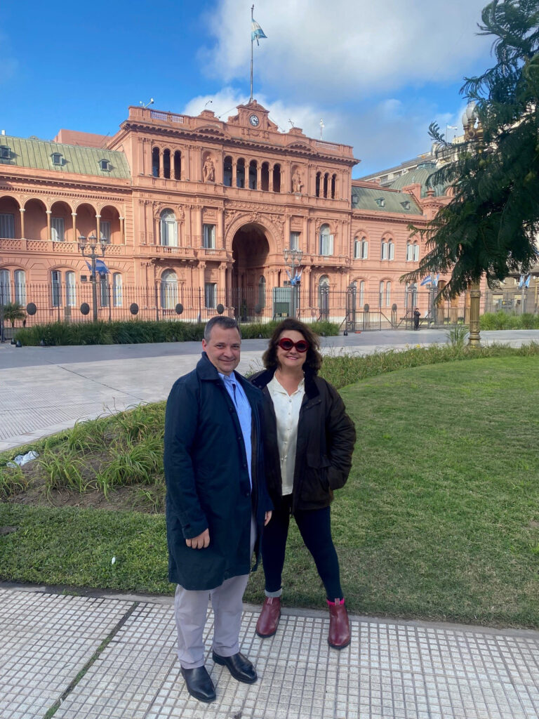 Drizabone and Rossi visiting the Casa Rosada — the Presidential Palace of Argentina
