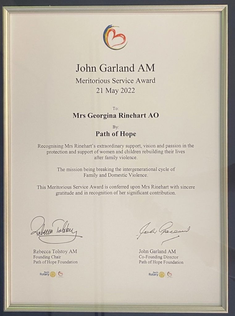 As always the Hancock Prospecting Group wishes Path of Hope all the best with their ongoing endeavours to help break the unacceptable cycle of domestic violence, and to celebrate the survivors of domestic violence.
